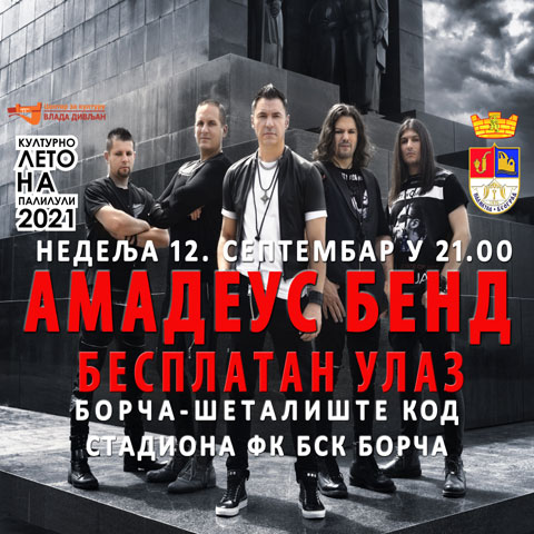 У оквиру манифестације "Културно лето на Палилули 2021" одржаће се у организацији Градске општине Палилула концерт "Амадеус бенда", у недељу, 12. септембра са почетком у 21 час, на шеталишту код стадиона ФК БСК Борча.