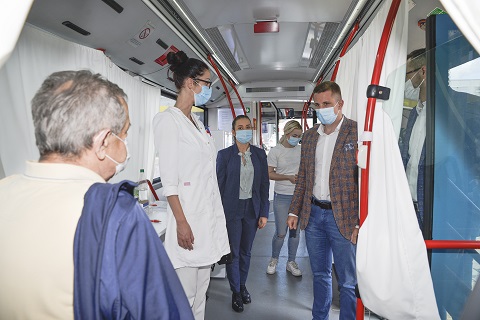 Према препорукама Градског завода за јавно здравље аутобус ГСП-а преуређен је како би служио за мобилни пункт за вакцинацију коју обавља комплетна лекарска екипа. Постоји део где се врши пријављивање, лекарски преглед, затим сама вакцинација, док се испред аутобуса налази шатор у виду чекаонице где се сачека одређено време после вакцинације.