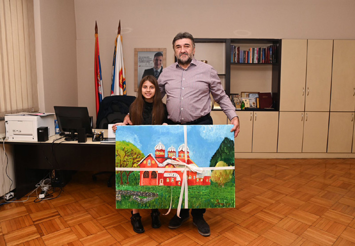 Председник Градске општине Палилула Мирослав Ивановић примио је данас ученицу четвртог разреда Основне школе „Раде Драинац“ из Борче Сандру Чикарић која се од своје пете године бави сликарством. Ово је био њихов поновни сусрет пошто је председник ГО Палилула угостио Сандру и у октобру ове године када је освојила прво место на ликовном конкурсу „Будућност какву желим“. Овом приликом талентована ученица је председнику Ивановићу уручила поклон који је специјално урадила за њега. У питању је слика „Пећка патријаршија“ урађена техником уље на платну у којој се Сандра опробала први пут. Захваљујући на поклону, председник Градске општине Палилула је Сандри честитао на њеним резултатима и изразио спремност да је и даље подржава у љубави према уметности.