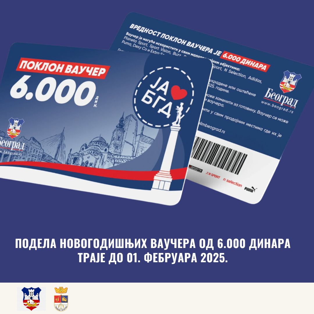 Обавештавамо суграђане да подела новогодишњих ваучера Града Београда у износу од 6.000 динара траје до 1. фебруара 2025. године.